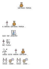 | Nº Visualizações: 1186 Nº Pranchas Relacionadas: 2 Tipo: Comunicar com Símbolos Prancha Dinâmica: NÃO Descrição: Música infantil feita com o software Comunicar com símbolos. Nível: iniciante Autor: Larissa Fernandes Profissão: Estudante de Terapia Ocupacional UFRJ E-mail: lara_tfernandes@hotmail.com | |||||||||