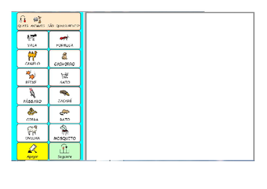 | Nº Visualizações: 1113 Nº Pranchas Relacionadas: 4 Tipo: Comunicar com Símbolos Prancha Dinâmica: SIM Descrição: Atividade para ser utilizada no computador que permite a classificação dos animais em quadrúpedes, mamíferos, répteis e aves. Nível: iniciante Autor: Thays Rodrigues Pires Profissão: Aluna de Graduação de Terapia Ocupacional da UFRJ E-mail: thaysrpires@gmail.com | |||||||||