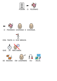 | Nº Visualizações: 1103 Nº Pranchas Relacionadas: 3 Tipo: Comunicar com Símbolos Prancha Dinâmica: NÃO Descrição: Poema o peixinho desenvolvido no software Comunicar com Símbolos Nível: iniciante Autor: Larissa Fernandes Profissão: Estudante de Terapia Ocupacional UFRJ E-mail: lara_tfernandes@hotmail.com | |||||||||