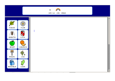 | Nº Visualizações: 991 Nº Pranchas Relacionadas: 1 Tipo: Comunicar com Símbolos Prancha Dinâmica: SIM Descrição: Atividade para o usuário selecionar quais são as figuras que possuem a cor verde. Atividade para ser usada no computador. Nível: iniciante Autor: Larissa da Rocha Guimarães Profissão: Aluna de Graduação de Terapia Ocupacional da UFRJ E-mail: l.rocha08@gmail.com | |||||||||