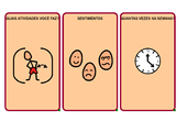 O que eu gosto de fazer no shopping Atividade na qual o usuário pode contar o que ele gosta de fazer no shopping. ... Camilla Costa 2.597 acessos 09/11/2011 |  Tenho prova Prancha de comunicação com a qual o usuário pode comentar sobre a prova, quando é, e como está se sentindo. ... Camilla Costa 2.123 acessos 29/12/2011 |  Prancha pai Atividade desenvolvida para favorecer a comunicação entre pai e filho. ... Thays Rodrigues Pires 1.748 acessos 29/12/2011 |  LIBRAS - A Turma do Pooh e os animais OK Atividade desenvolvida com o objetivo de relacionar os principais personagens da turma do Pooh aos seus ... Jessika Kojima 2.116 acessos 01/07/2016 |