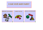 Perguntas - A Pequena Sereia OK Atividade com perguntas interativas sobre a história da Pequena Sereia e seus personagens. ... Nathalia Pereira Amado 1.557 acessos 30/06/2016 |  ARASAAC - DIA DAS MÃES Prancha de comunicação construída com símbolos ARASAAC sobre o dia das mães. ... Thainara Pires Gonçalo 1.220 acessos 24/04/2014 |  ARASAAC- ANIMAIS E SUAS AÇÕES OK Atividade feita com símbolos do ARASAAC, que relaciona os animais e suas respectivas ações. ... Thainara Pires Gonçalo 1.301 acessos 25/08/2016 |  O que você quer comer? Atividade desenvolvida pelo projeto to brincando que apresenta uma prancha com opções de comida para escolher o que ... Projeto TO Brincando 1.472 acessos 28/07/2014 |