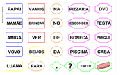 Bilhete Papai e Mamãe OK Atividade para o usuário montar uma carta. Possui várias pessoas da família, ações, entre outras coisas. ... Naila Porto Machado de Oliveira 1.641 acessos 13/08/2016 |  Defeitos Atividade com 6 opções de adjetivos considerados como defeitos. ... Naila Porto Machado de Oliveira 1.580 acessos 15/06/2011 |  Pintura do Rio de Janeiro OK Atividade possui várias palavras para formar frases sobre uma pintura da cidade do Rio de Janeiro. ... Naila Porto Machado de Oliveira 1.415 acessos 01/09/2016 |  Base - 6 opções OK Base de prancha com 6 opções. ... Márcia Ribeiro de Lima 2.096 acessos 13/07/2016 |