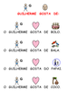 O Guilherme gosta de.. OK Fala sobre várias coisas que o menino Guilherme gosta. desenvolvida com o software Comunicar com símbolos. ... Miryam Bonadiu Pelosi 1.415 acessos 13/08/2016 |  Jogo da memória OK Prancha de comunicação para ser impressa e pode ser utilizada durante o jogo da memória. ... Priscila Rodrigues 9.154 acessos 23/08/2016 |  Conversando sobre os personagens Prancha sobre os personagens da novela "Morde e Assopra". ... Larissa Fernandes 1.529 acessos 15/06/2011 |  Férias Prancha para ser impressa com a qual o usuário pode relatar o que fez nas férias. ... Camilla Costa 2.122 acessos 15/06/2011 |