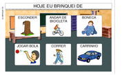 O Que Quero Fazer OK Nestas pranchas encontram-se símbolos relacionados às atividades de lazer como: ler revista, jogar dama, ... Márcia Ribeiro de Lima 18.448 acessos 23/08/2016 |  Família Atividade mostra como é a família de alguns personagens e quer saber do usuário como é a família dele. ... Miryam Bonadiu Pelosi 1.081 acessos 11/06/2011 |  O que eu quero fazer Atividades desenvolvida com o software SDP para auxiliar a escolha de atividades. Foi pensada para escolha ... Márcia Ribeiro de Lima 1.301 acessos 12/06/2011 |  Jogo da memória OK Prancha de comunicação para ser impressa e pode ser utilizada durante o jogo da memória. ... Priscila Rodrigues 9.154 acessos 23/08/2016 |