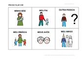 Família Prancha possui pessoas da família que, normalmente, são mais próximas ao usuário. ... Miryam Bonadiu Pelosi 989 acessos 24/07/2011 |  Família (B) Prancha com outras pessoas da família como tios, primos, sobrinhos. ... Miryam Bonadiu Pelosi 1.083 acessos 24/07/2011 |  Passear Prancha com opções de lugares turísticos para o usuário escolher aonde quer ir ou conversar sobre onde ele foi. ... Miryam Bonadiu Pelosi 1.071 acessos 24/07/2011 |  Tipos de Histórias/Filmes Através desta prancha o usuário poderá indicar tipos de histórias/filmes de sua preferência. Tipos ... Márcia Ribeiro de Lima 1.172 acessos 24/07/2011 |