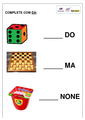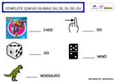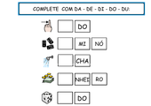 Conceitos - 101 Dálmatas OK Imagens para serem impressas que auxiliam o ensino de conceitos como bom e mau, alto e baixo através dos personagens ... Nathalia Pereira Amado 1.037 acessos 30/06/2016 |  Complete com sílabas OK Atividade desenvolvida pelo Projeto TO Brincando para completar as palavras com as sílabas que faltam. ... TObrincando 939 acessos 26/08/2016 |  Projeto leitura e escrita - MA ME MI MO MU OK Atividade desenvolvida pelo Projeto TO Brincando para completar as palavras com a família do M (ma, me, mi, mo, mu). ... Projeto TO Brincando 1.007 acessos 30/06/2016 |  Pintar - Jogo Palavra Secreta OK Atividade de pintar o desenho que começa com a letra indicada no enunciado. Atividade desenvolvida pelo projeto ... TObrincando 1.059 acessos 30/06/2016 |