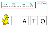 Projeto leitura e escrita - letra A OK Atividade de escrita de duas palavras com a letra A. Atividade desenvolvida pelo Projeto TO Brincando da UFRJ. ... TObrincando 1.001 acessos 30/06/2016 |  Certificados de comportamento OK Atividade desenvolvida pela empresa Imagina que apresenta diferentes figurinhas e imagens para serem usadas ... TObrincando 692 acessos 30/06/2016 |  Projeto leitura e escrita - Letra B OK Atividade de completar frases com duas palavras com a letra B. Atividade desenvolvida pelo Projeto TO Brincando ... TObrincando 1.109 acessos 30/06/2016 |  Projeto leitura e escrita - Letra D OK Atividade de completar frases com uma palavra com a letra D, apoiada pelo símbolo. Atividade desenvolvida ... TObrincando 1.053 acessos 30/06/2016 |