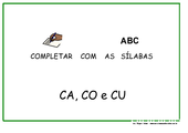 Projeto leitura e Escrita - CA CO CU OK Atividade desenvolvida pelo projeto TO Brincando para completar o nome das figuras com as sílabas do C (ca, co, cu). ... Projeto TO Brincando 1.847 acessos 30/06/2016 |  Cores - Tarzan OK Atividade Pedagógica para ser impressa com o intuito de trabalhar a identificação das cores. ... Nathalia Pereira Amado 886 acessos 30/06/2016 |  Números - Tarzan OK Atividade Pedagógica para ser impressa com o intuito de trabalhar a identificação dos números. ... Nathalia Pereira Amado 1.153 acessos 30/06/2016 |  Circule o diferente - Ursinho Pooh OK Nessas atividade a criança deverá circular a única imagem diferente entre as três opções exibidas. ... Nayana Rodrigues 760 acessos 30/06/2016 |