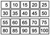Contando de 2 em 2 e 10 em 10 OK Atividade com base para ser preenchida com o número na ordem correta de contagem de 2 em 2 ou de 10 em 10. ... Projeto TO Brincando 909 acessos 23/08/2016 |  Contagem 5 em 5 Atividade de contagem com base correspondente a números de 5 em 5 para serem relacionados. Atividade ... Projeto TO Brincando 904 acessos 15/05/2014 |  Contagem 100 em 100 OK Atividade de contagem com base correspondente a números de 100 em 100 para serem completadas. Atividade ... Projeto TO Brincando 794 acessos 27/10/2016 |  Compras OK Atividade com produtos relacionados aos seus valores. A criança deve compor os valores usando dinheiro ... Projeto TO Brincando 802 acessos 27/10/2016 |