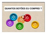 As formas geométricas estão por toda a parte Atividade matemática e de identificação das formas geométricas em objetos e coisas do cotidiano. ... Gisela de Moraes Vergne 533 acessos 12/07/2021 |  Vamos contar botões? Vídeo curto sobre contar botões coloridos - de 1 a 6. ... Gisela de Moraes Vergne 545 acessos 14/07/2021 |  Qual nota vale mais? Atividade-jogo de localização do valor de cada nota de real (dinheiro brasileiro)na reta numérica. ... Gisela de Moraes Vergne 487 acessos 14/07/2021 |  Quanto custa? Atividade-jogo de compra de produtos com moedas de um real. ... Gisela de Moraes Vergne 525 acessos 12/07/2021 |