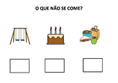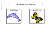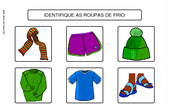 Identifique as roupas de frio OK Atividade com a qual o indivíduo deve identificar, dentre algumas opções, as roupas que são utilizadas ... Camilla Costa 1.683 acessos 30/06/2016 |  Qual a fruta que você gosta de comer? - 3 opções OK Prancha de comunicação para a escolha de três opções de fruta. Pode ser impressa ou utilizada no computador com ... Camilla Costa 1.427 acessos 08/09/2016 |  Qual o animal vive na água? OK Atividade na qual o usuário deve identificar o animal que vive na água. Atividade desenvolvida para ser impressa ... Camilla Costa 1.177 acessos 08/09/2016 |  O que encontramos no Fundo do mar OK Atividade com três opções sobre o que encontramos no mar. Atividade desenvolvida para ser impressa ou utilizada com ... Larissa Fernandes 947 acessos 08/09/2016 |