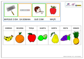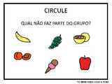 ARASAAC - Frutas 2 OK Prancha de comunicação elaborada com símbolos ARASAAC para seleção de Frutas (parte 2). Prancha com 9 opções ... Luciana Rivillini Ferreira 1.147 acessos 08/09/2016 |  LIBRAS - A Turma do Pooh e os animais OK Atividade desenvolvida com o objetivo de relacionar os principais personagens da turma do Pooh aos seus ... Jessika Kojima 2.136 acessos 01/07/2016 |  Circule - Classificação OK Atividade sobre categorias onde a criança deverá circular a imagem que não pertence ao grupo e depois escrever o nome ... Projeto TO Brincando com a Fono 1.055 acessos 23/09/2016 |  Prancha de Animais OK Prancha dinâmica construída com o programa SDP sobre animais. ... Nathany Gaiotti Cabral 1.023 acessos 08/09/2016 |
